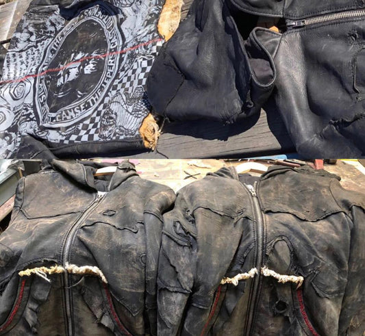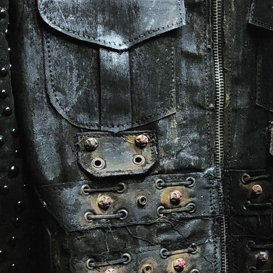 Junker (est. 2001) started with stuff I dived outta dumpsters, found at garages sales or stole. Everything is made with grubby little paws. I have mutated, overdyed, rusted, painted, buried, printed or bled on every piece. The clothes are all one of a kind, made from upclycled , recycled and resurrected from denim, leather or whatever I can find in the dirty streets around the world.